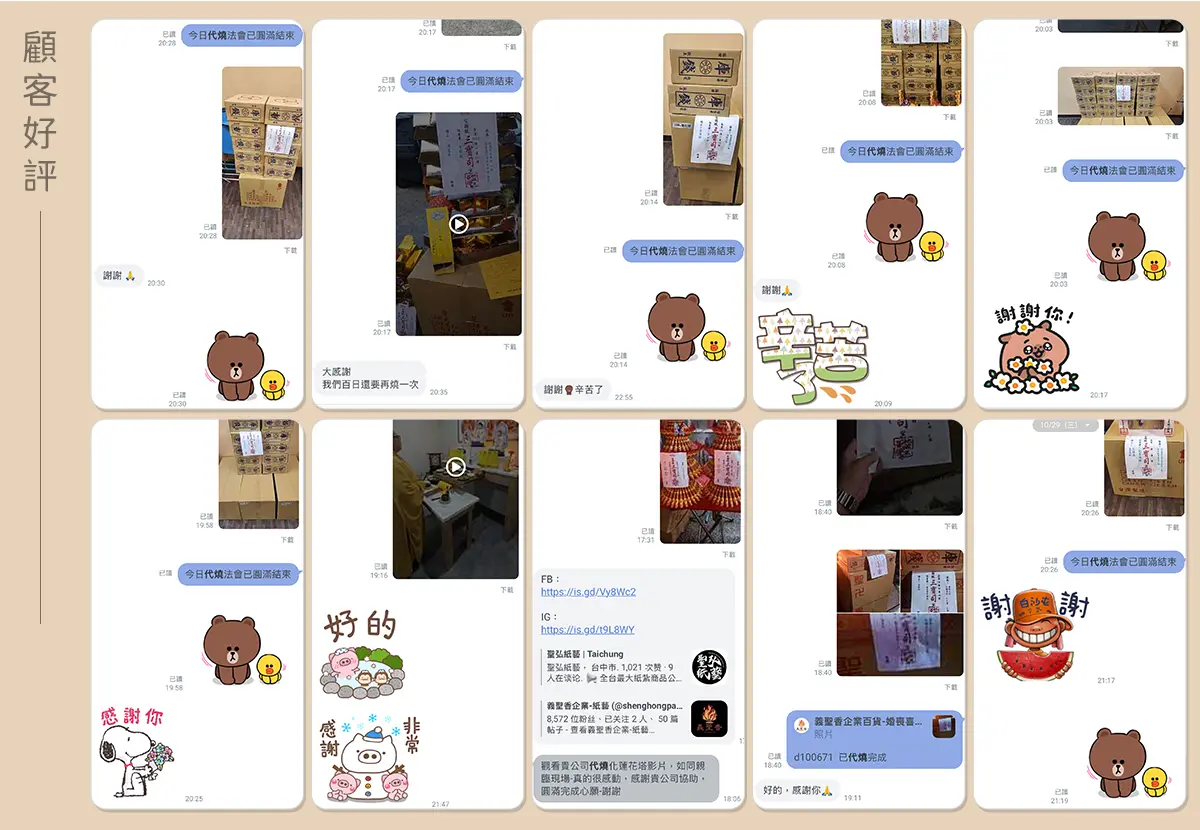 可委託專業單位代燒庫錢、蓮花塔與紙紮,並安排誦經迴向;提供祭名、祖先稱謂與日期即可,完成後可提供照片或影片回傳。